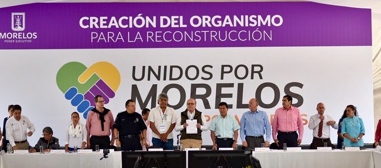 El gobernador Graco Ramírez y los presidentes municipales acordaron la creación del Organismo para la Reconstrucción «Unidos por Morelos», que contará con una bolsa inicial de 300 millones de pesos, recursos estatales, destinados a atender a las familias que no sean incluidas en el Fondo de Desastres Naturales (Fonden).